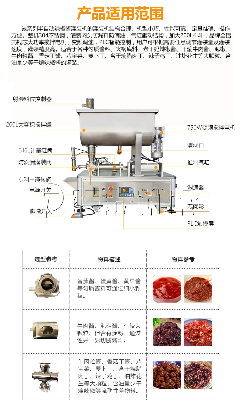 1、該機(jī)為番茄醬灌裝機(jī),配有自動(dòng)攪拌功能,使物料混合更加均勻 ,有效的解決灌裝誤差大的問題;