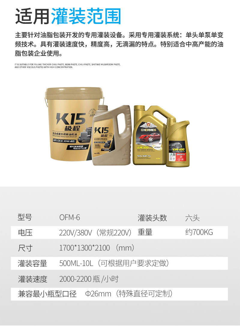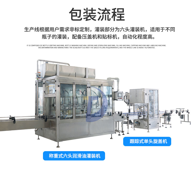 因而潤滑油灌裝生產(chǎn)線可以為越來越多的原料油產(chǎn)品提供人性化的外包裝,不僅為產(chǎn)品提供了好的品牌形象,也是讓他們的市場定位更為確立,進而更快的吸引顧客,讓產(chǎn)品有著更快的市場銷售。并且潤滑油灌裝生產(chǎn)線可以根據(jù)顧客的要提供不一樣的外包裝,進而提供不一樣的視覺效果感受,讓產(chǎn)品形象更為確立,進而讓原料油產(chǎn)品有著更合適自身的市場銷售。因而在潤滑油灌裝生產(chǎn)線的生產(chǎn)過程中,我們在原材料、結(jié)構(gòu)、造型設(shè)計、技術(shù)性、零配件等各個方面都嚴苛的把控,潤滑油灌裝生產(chǎn)線唯有如此才可以應(yīng)對不一樣的原料油產(chǎn)品提供不一樣的設(shè)計,并讓產(chǎn)品有著獨特的審美使用價值,進而讓顧客在訂購時可以看見不一樣的產(chǎn)品包裝,讓產(chǎn)品有著更快的市場銷售。