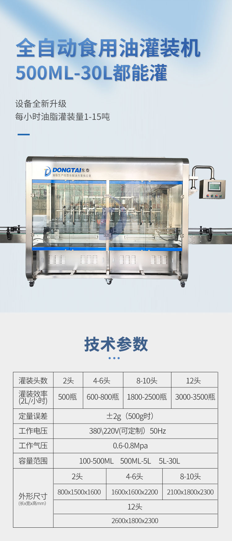 東泰機械專業(yè)灌裝機生產(chǎn)加工企業(yè)為您提供最優(yōu)質(zhì)的食用油灌裝機、全自動灌裝機、(液體、膏體、辣椒醬、顆粒)灌裝機等,承接各種生產(chǎn)線非標定做。東泰機械,品質(zhì)卓越!